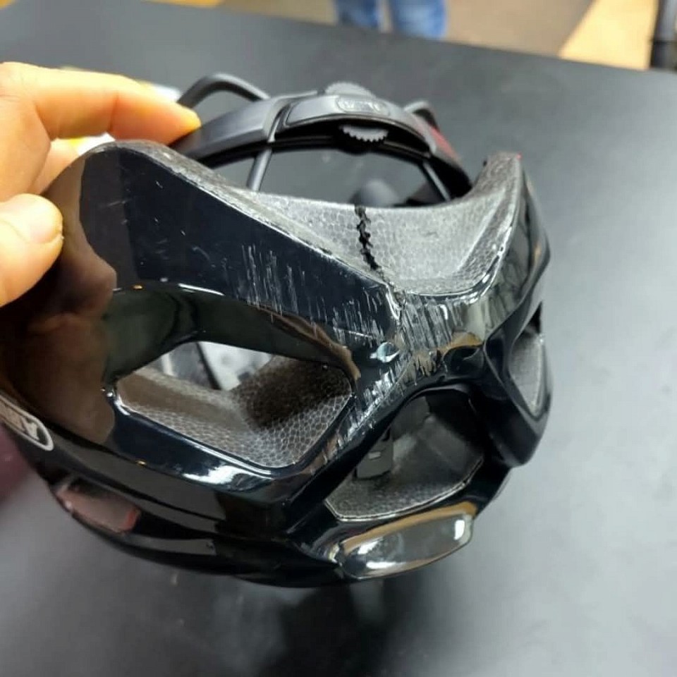 Je zou je helm maar eens NIET hebben opgehad!
